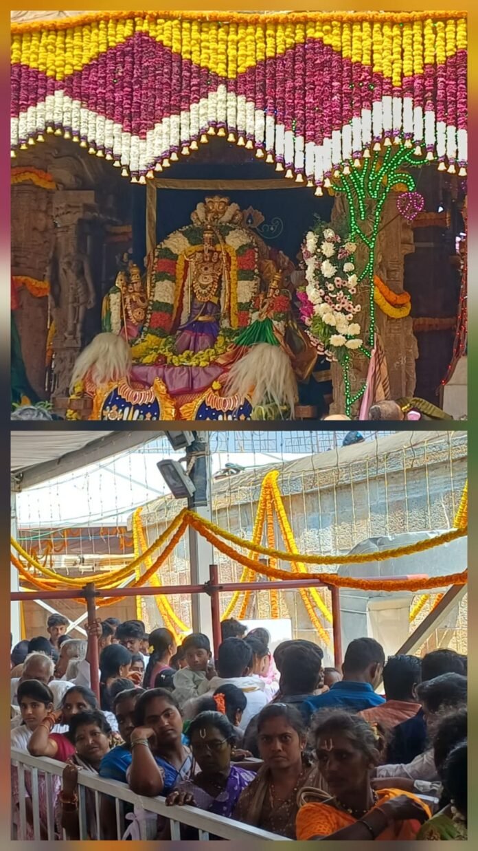 ఆంధ్ర భద్రాద్రి ఏకశిలా నగరం ఒంటిమిట్టలో శ్రీరామనవమి సందర్భంగా శ్రీ కోదండరామ స్వామి నీ దర్శించుకునేందుకు భక్తులు పోటెత్తారు. బ్రహ్మోత్సవాల్లో భాగంగా ఒంటిమిట్టకు వచ్చే ప్రతి భక్తునికి స్వామి వారం దర్శనం కలిగేలా టీటీడీ అధికారులు పెద్ద ఎత్తున ఏర్పాట్లు చేశారు. స్వామివారి దర్శనానికి క్యూలైన్ల ద్వారా భక్తులకు ఎటువంటి అవసరం కలగకుండా ఏర్పాట్లు చేశారు. అలాగే క్యూలైన్లో వచ్చే భక్తులకు వాటర్ బాటిల్ లు, మజ్జిగ ప్యాకెట్లు అందజేస్తూ ఎప్పటికప్పుడు ఎటువంటి ఇబ్బందులు లేకుండా అందరికీ దర్శనం కలిగేలా చర్యలు అధికారులు చేపడుతున్నారు. భారీ బందోబస్తు మధ్య ప్రతి ఒక్కరిని  తనిఖీ చేస్తూ శ్రీ రామ వేడుకలను సాంప్రదాయబద్ధంగా భక్తులకు కన్నుల పండుగ కలిగేలా దేవదాయ శాఖ అధికారులు నిర్వహిస్తున్నారు. దర్శనానికి వచ్చే ప్రతి భక్తుడు తనివి తీర స్వామివారిని దర్శించుకుని తమ ఆనందాన్ని వ్యక్తపరుస్తున్నారు.