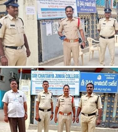 కడప ఫిబ్రవరి 26 (ప్రజాసీమ రిపోర్టర్): జిల్లా ఎస్ పి షెల్కే నచికేత్ విశ్వనాథ్ మేరకు జిల్లా వ్యాప్తంగా ప్రారంభమైన ఇంటర్ పరీక్ష కేంద్రాల వద్ద పోలీస్ పటిష్టమైన బందోబస్తు ఏర్పాట్లు చేపట్టారు. పరీక్ష కేంద్రాల వద్ద ఎలాంటి అవాంఛనీయ సంఘ టనలు జరగ కుండా చర్యలు తీసుకున్నారు. జిల్లాలో ఇంటర్ పరీక్షల సెంటర్ల వద్ద సీఐ స్థాయి అధికారులు, ఎస్ఐలు, పోలీస్ సిబ్బంది నియమించి పరీక్షలు ప్రశాంతంగా జరిగేలా అన్ని జాగ్రత్తలు తీసుకున్నారని ఎస్ఐ రాజేశ్వర రెడ్డితెలిపారు